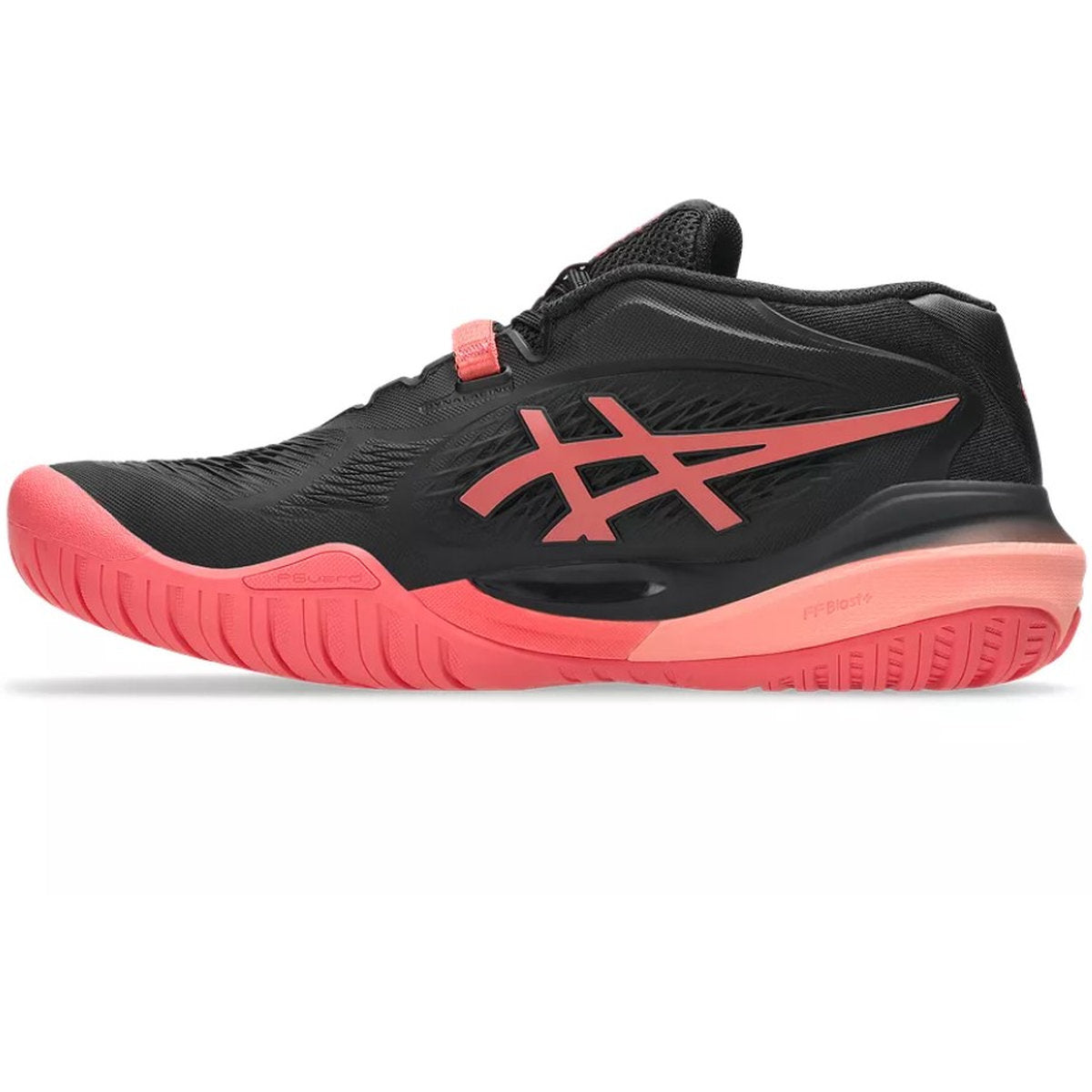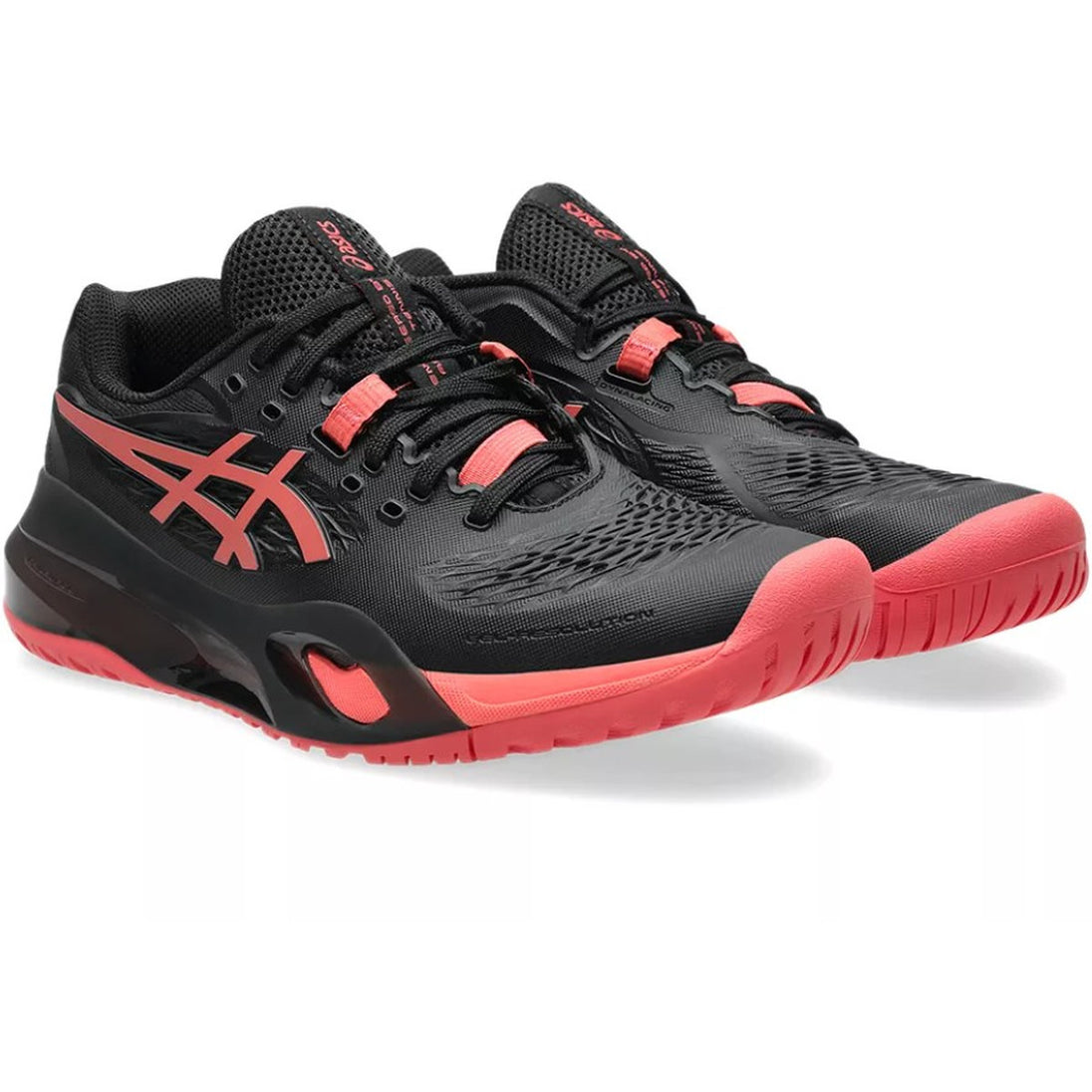 The Asics Women's Gel-Resolution X Tennis Shoes (Black/Sienna) is a game-changer in comfort and stability for tennis players who like to control the game from the baseline. In keeping with the philosophy of continuous improvement, these Asics court shoes have received updates to the foam, lateral support and overall fit.