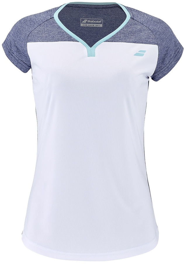 Babolat Girl's Play Cap Sleeve Tennis Tee (White/Blue Heather)