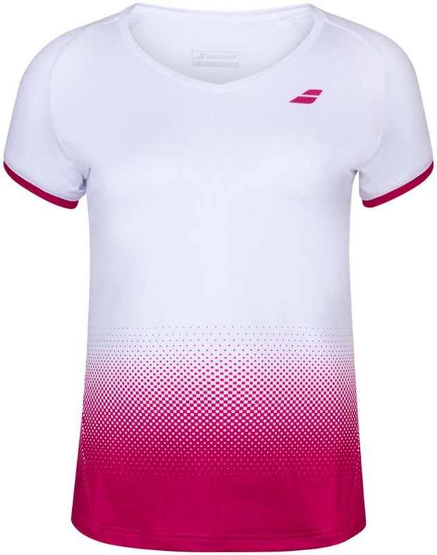 Babolat Women's Compete Cap Sleeve Tennis Top w/ Fiber-Dry Polyester (White/Vivacious Red)