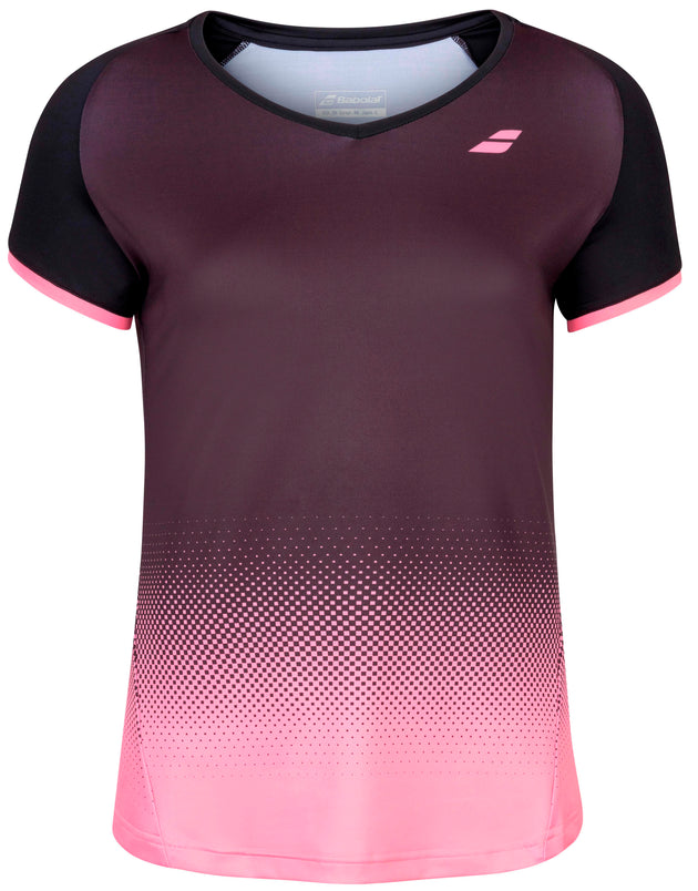 Babolat Women's Compete Cap Sleeve Tennis Top w/ Fiber-Dry Polyester (Black/Geranium Pink)