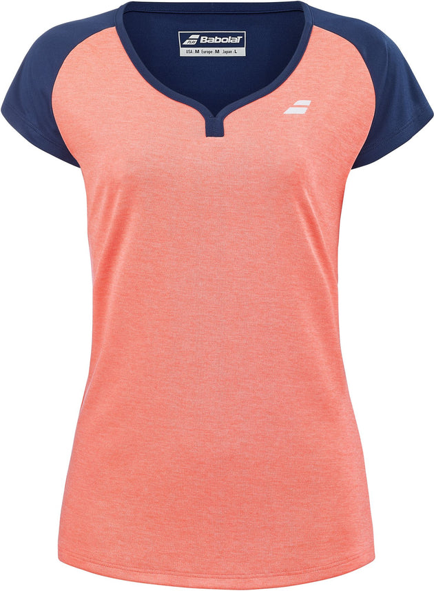 Babolat Women's Play Cap Sleeve Tennis Top (Fluo Strike/Estate Blue)