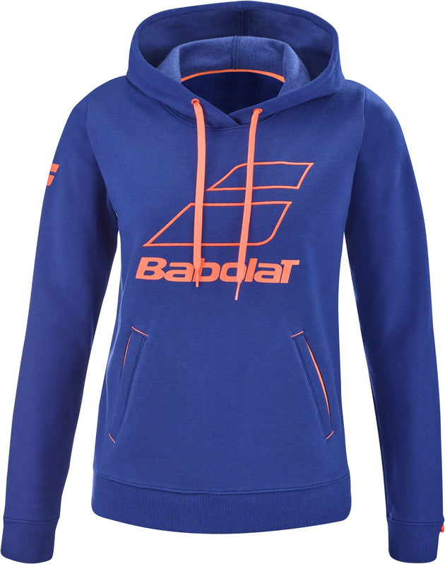 Babolat Women's Exercise Hooded Tennis Training Sweatshirt (Estate Blue/Fluo Strike)