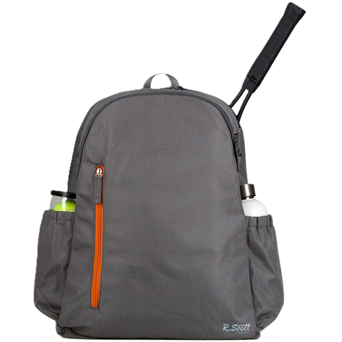 The R Scott Tennis Backpack (Charcoal/Orange) is Ame & Lulu's first men’s tennis backpack. Made out of cordura nylon, this backpack has an exterior racquet pocket that will hold up to two racquets and multiple interior and exterior pockets to hold all of your gear..