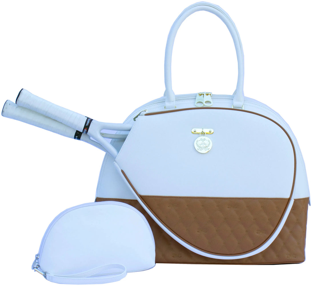 With a timeless sophistication, the design features multi-textured elements and a rich color palette. Revel in the opulence of gold-tone hardware, accompanied by generous storage space for all your essentials during lively tennis or pickleball matches.