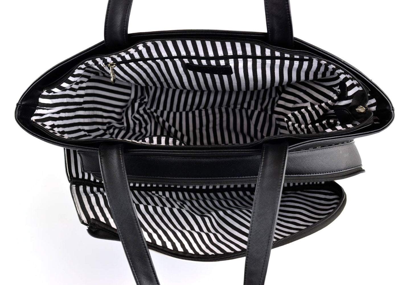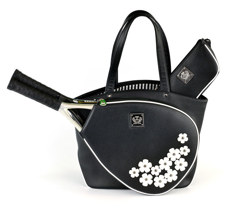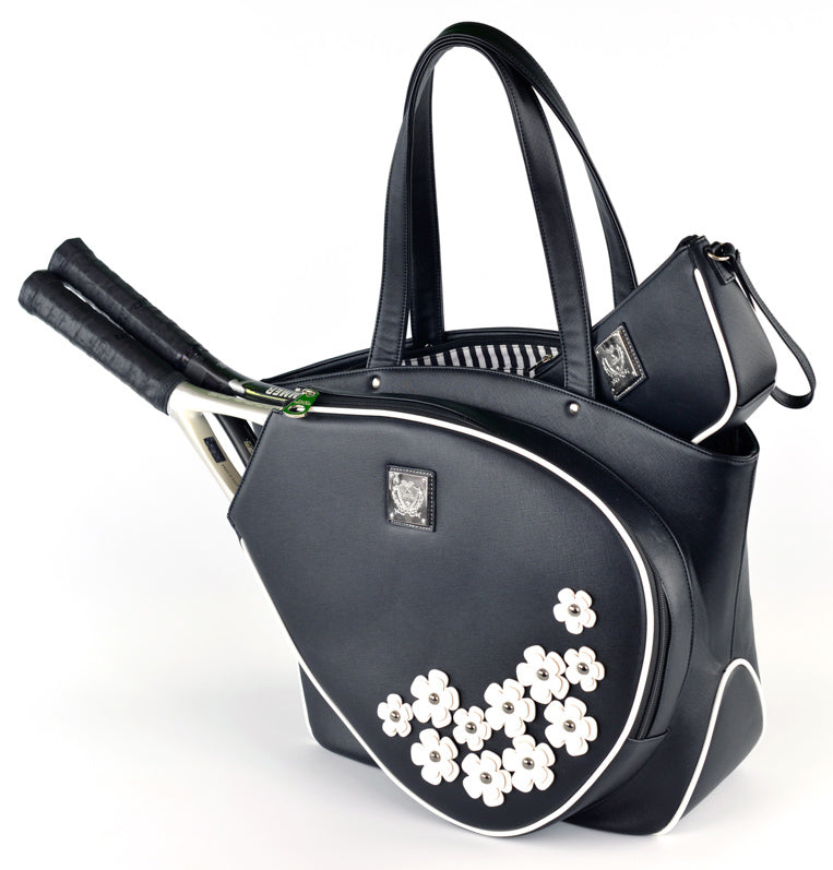 Court Couture distinguishes itself by bringing 21st century fashion to tennis bags by providing a fresh style and new look. These bags bring high style and blend it with top-notch materials. You will be impressed by the attention to detail and superb craftsmanship that is put into each and every bag. The Cassanova Bag features a soft and supple faux pebble leather exterior with silver toned hardware and sturdy zippers. The interior is lined in coordinating fabric. The front zippered compartment holds up to two oversize tennis racquets. A large main compartment with inner pockets and outer accessory pockets carry all the items you'll need. There is enough room to easily hold a laptop or an extra set of clothes for after a match. There is also a pouch to hold your water bottle. The side pocket is great for storing your cell phone and car keys. The dual shoulder straps have a 10' drop, making it easy to hold the bag in your hand or over your shoulder. There are metal feet on the bottom of the bag to protect the base from wear and tear. There's even a separate matching cosmetics case to hold your makeup, or double as a standalone bag for that quick trip to the store.