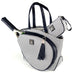Court Couture distinguishes itself by bringing 21st century fashion to tennis bags by providing a fresh style and new look. These bags bring high style and blend it with top-notch materials. You will be impressed by the attention to detail and superb craftsmanship that is put into each and every bag. The Cassanova Bag features a soft and supple faux pebble leather exterior with silver toned hardware and sturdy zippers. The interior is lined in coordinating fabric. The front zippered compartment holds up to two oversize tennis racquets. A large main compartment with inner pockets and outer accessory pockets carry all the items you'll need. There is enough room to easily hold a laptop or an extra set of clothes for after a match. There is also a pouch to hold your water bottle. The side pocket is great for storing your cell phone and car keys. The dual shoulder straps have a 10' drop, making it easy to hold the bag in your hand or over your shoulder. There are metal feet on the bottom of the bag to protect the base from wear and tear. There's even a separate matching cosmetics case to hold your makeup, or double as a standalone bag for that quick trip to the store.