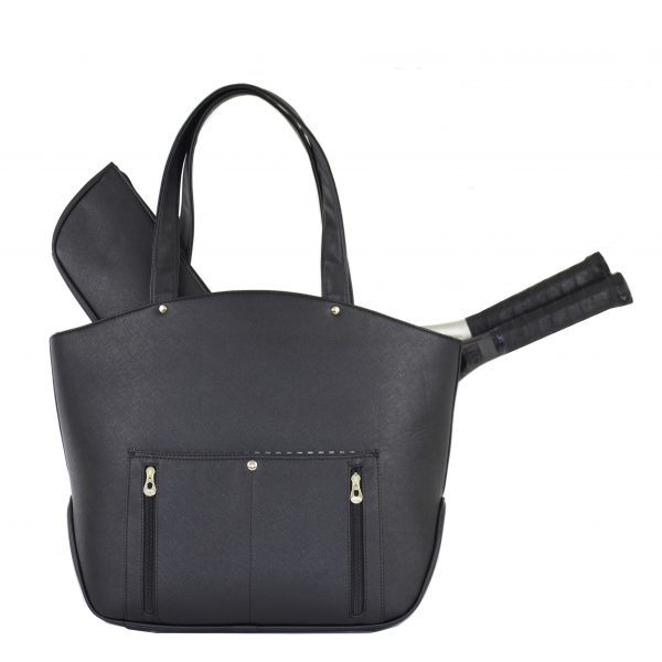 Court Couture distinguishes itself by bringing 21st century fashion to ladies tennis bags by providing a fresh style and new look. These bags for women bring high style and blend it with top-notch materials. You will be impressed by the attention to detail and superb craftsmanship that is put into each and every bag. The Cassanova Bag features a soft and supple faux pebble leather exterior with silver toned hardware and sturdy zippers. The interior is lined in coordinating fabric. The front zippered compartment holds up to two oversize tennis racquets. A large main compartment with inner pockets and outer accessory pockets carry all the items you'll need. There is enough room to easily hold a laptop or an extra set of clothes for after a match. There is also a pouch to hold your water bottle. The side pocket is great for storing your cell phone and car keys. The dual shoulder straps have a 10' drop, making it easy to hold the bag in your hand or over your shoulder. There are metal feet on the bottom of the bag to protect the base from wear and tear. There's even a separate matching cosmetics case to hold your makeup, or double as a standalone bag for that quick trip to the store.