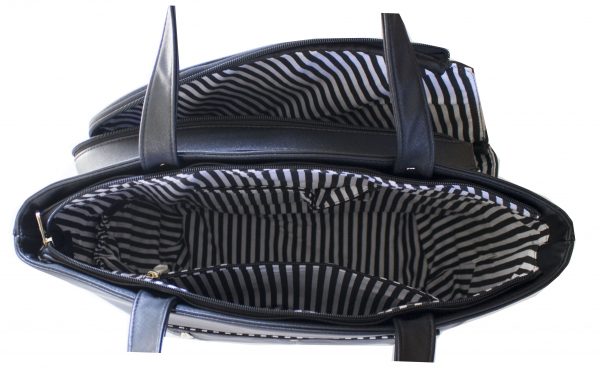 Large interior with pockets for water bottle, cell phone, and other small items