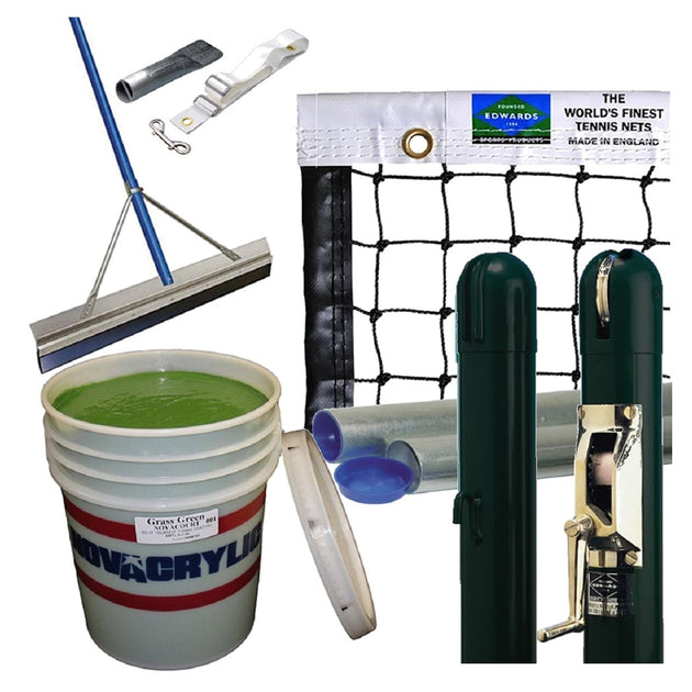 Our Tennis Equipment Packages provide everything needed for setting up a regulation court. Available in Luxury, Premium, Basic Plus, and Basic levels, each package is designed to match your needs and budget. These kits include essentials such as tennis net systems, center straps, net anchors, and court accessories selected for durability and professional performance. Whether you're a private facility, school, or club, we have a tennis package that fits your project.