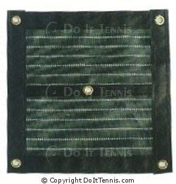 The braided solid-core, black polyethylene net body of the Tidy-fit tennis net and the Revolution tennis net, is U.V. resistant treated for a durable net and the knots are heat-set for a longer lasting shape. All Courtmaster Tennis Equipment products have nets that are protected by a five year warranty. Courtmaster net headbands are quadruple stitched with an extra-duty polyester thread for the longest lasting, abrasion resistant headband on the market. The 3 inch wide side band and the 1 inch bottom bands are made from their thickest vinyl (18 inch) and lock stitched with two rows of black polyester thread for a sleek and professional looking net.
