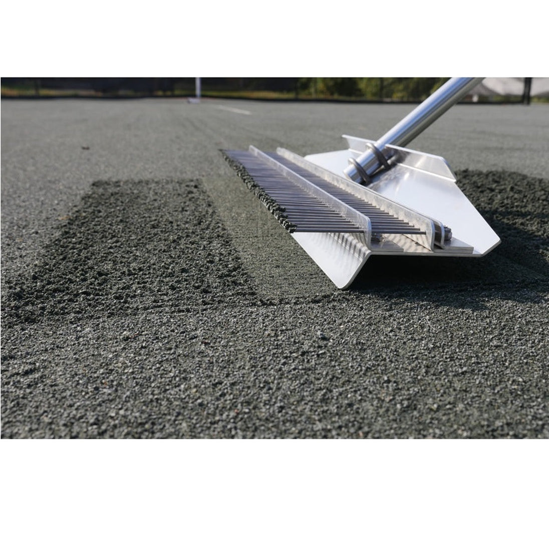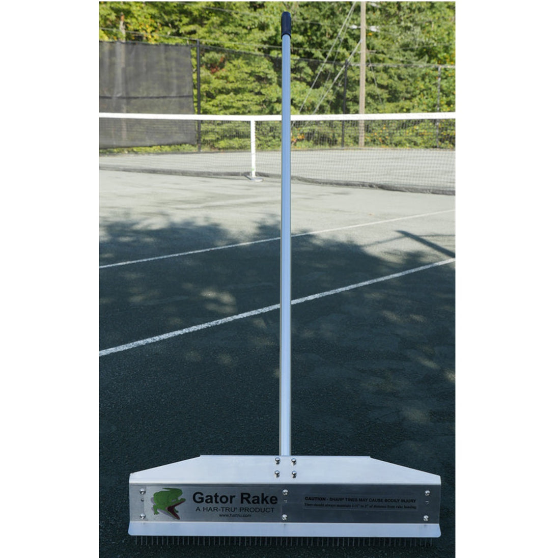 The Har-Tru Agitator 24 Inch Hand Model Clay Court Rake is the perfect hand tool for spot treatment of areas susceptible to moss, weeds, algae or hard pan. Part of the Gator Rake line and used at the USTA National Campus. Many of today's Har-Tru courts need daily agitation to perform at their best. This is particularly true for subsurface-irrigated courts, West Coast courts, and indoor courts. The Gator Rake line was developed for this very purpose: it's a tool that can be used daily to leave the ideal amount of loose surface for perfect play. The shape and length of the aluminum teeth, along with the weight characteristics of the rake, make it unique to its purpose.