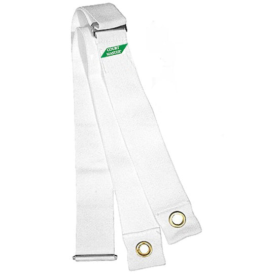 The braided solid-core, black polyethylene net body of the Tidy-fit tennis net and the Revolution tennis net, is U.V. resistant treated for a durable net and the knots are heat-set for a longer lasting shape. All Courtmaster Tennis Equipment products have nets that are protected by a five year warranty. Courtmaster net headbands are quadruple stitched with an extra-duty polyester thread for the longest lasting, abrasion resistant headband on the market. The 3 inch wide side band and the 1 inch bottom bands are made from their thickest vinyl (18 inch) and lock stitched with two rows of black polyester thread for a sleek and professional looking net.