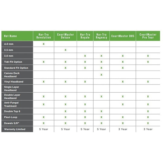 The Har-Tru Royale Double Braided Tennis Net has a durable net with the double-layered headbands. Most other manufacturer feature a coated laminated vinyl, with built in anti-fungal treatment. The two layers of vinyl headband material are the heaviest...Regular price $249.00Regular price $249.00 -