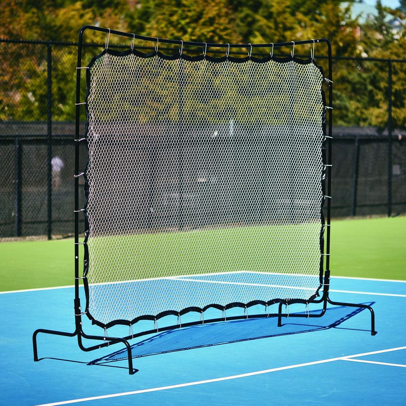 The Courtmaster Deluxe Tennis Rebound Net includes the net and durable steel frame with adjustable tension straps for rebound speed variations.