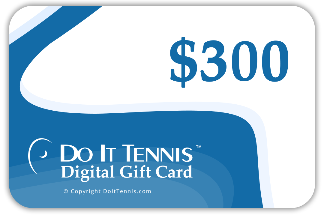 The $300 Do It Tennis Digital Gift Card is also available in $25, $75, $100, $125, $150, $200, $250, $350, $400, $450 and $500 amounts.