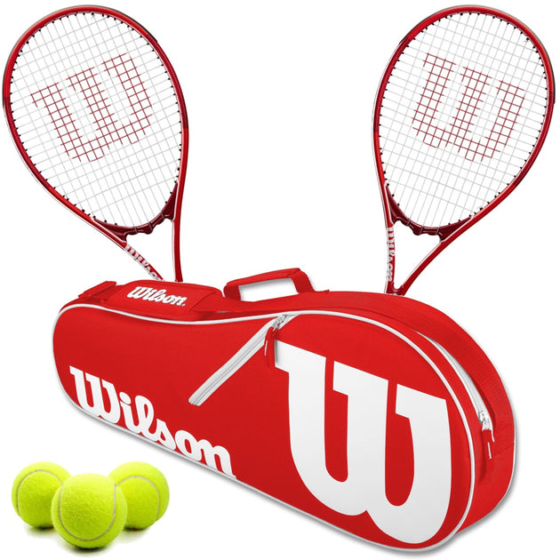 Wilson Hyper Power Doubles Tennis Bundle - 2 Racquets, 1 Bag & 3 Balls