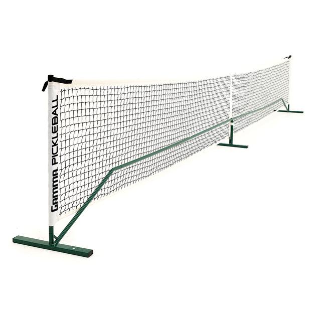 The GAMMA Pickleball Portable Net features a durable powder coated steel frame that quickly sets up and breaks down, 2mm braided net body with all-weather woven oxford headband and a nylon carry case.