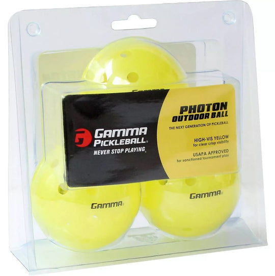 The brightest and most durable pickleball available, the GAMMA Photon pickleball ball is engineered for true flight, consistent bounce and long-lasting play. FEATURES: 40 holes that decrease effects of wind and allow for controllable airplay Ultra-balanced...Regular price $9.99Regular price $9.99 -