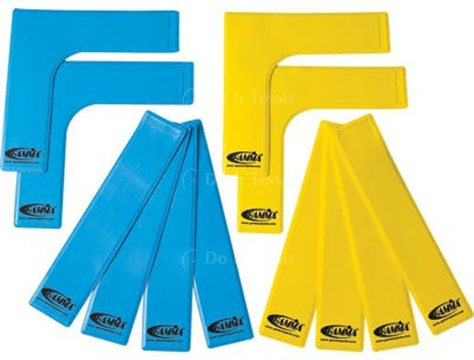 Treaded, non-skid lines to create a 36’ or 60’ court. 8 straights (12 3/4” x 3”). 4 corners (10 3/4” x 10 3/4” x 3”).Perfect for quick set up and play. Flat for easy transport.