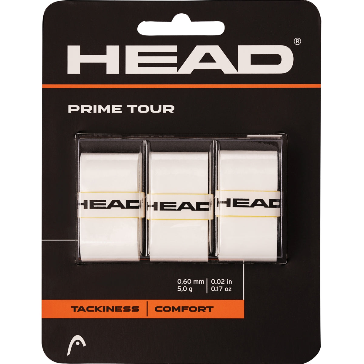 The Head Prime Tour Tennis Racquet Overgrip 3 pack (White) comes with the same benefits of its predecessor but is a little less dry, but a little tackier than Prime Pro. This overwrap provides good feel and exceptional comfort.