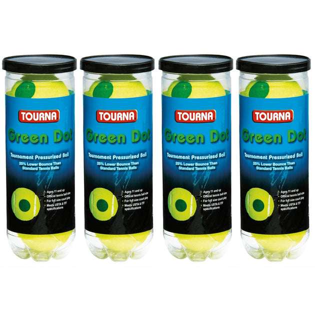 Tourna Youth Green Dot Tennis Balls - Cans (12 Balls)