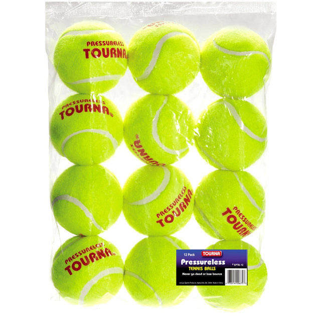 Tourna Practice Pressureless Tennis Balls - Bag (12 Balls)