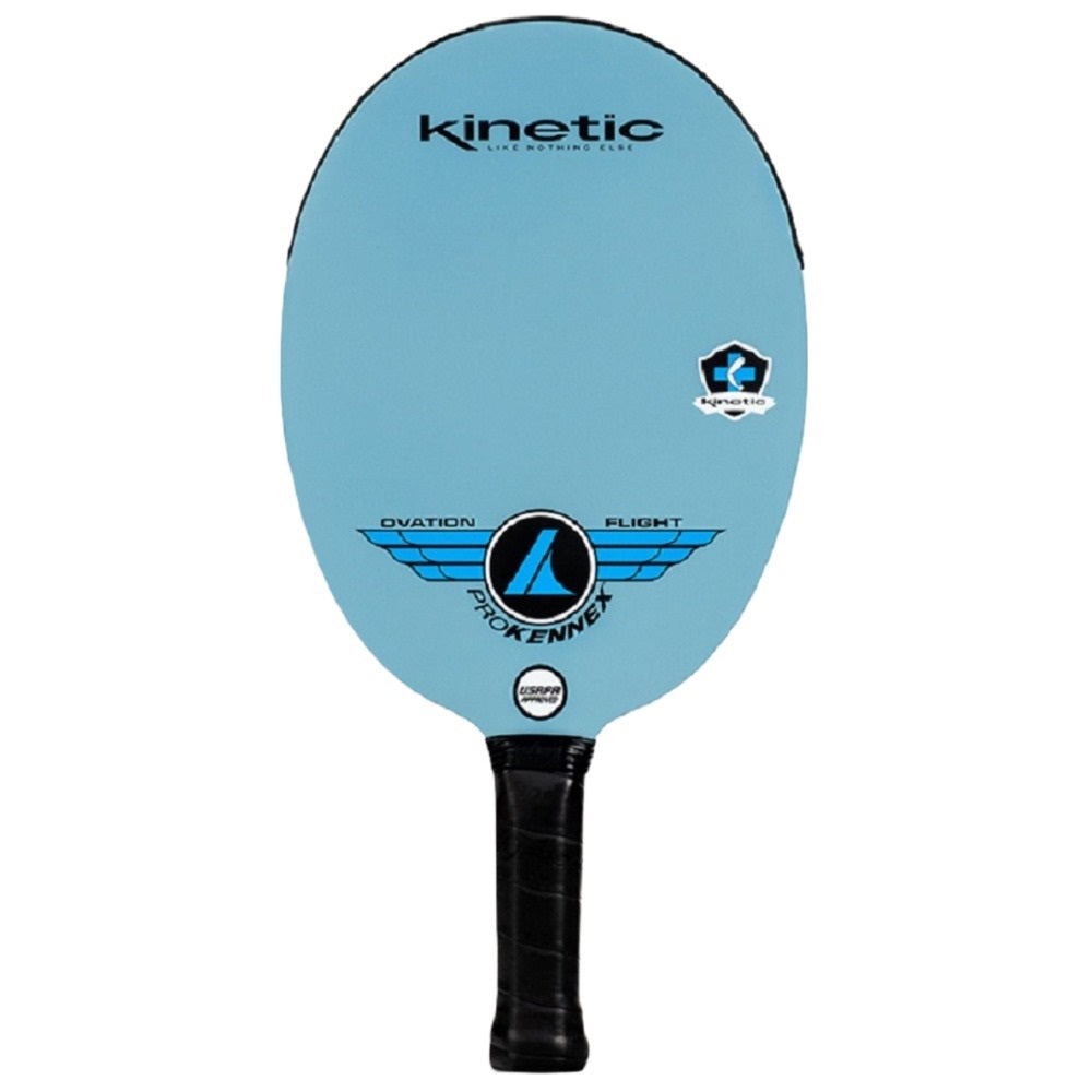 The Pro Kennex Ovation Flight Pickleball Paddle (Blue) is engineered for maneuverability with wind resistant edgeless construction and thin core technology. This pickleball paddle is lightning in your hand. Built for quickness and reflex enhancement, the paddle boasts unparalleled tip speed. With the Kinetic shock absorbing system, touch, feel, and kitchen play are all enhanced bringing the best of both worlds to the Ovation Flight. The New Flight Series is the lightest paddle Pro Kennex offers and results in lightning fast reflexes and superb maneuverability.