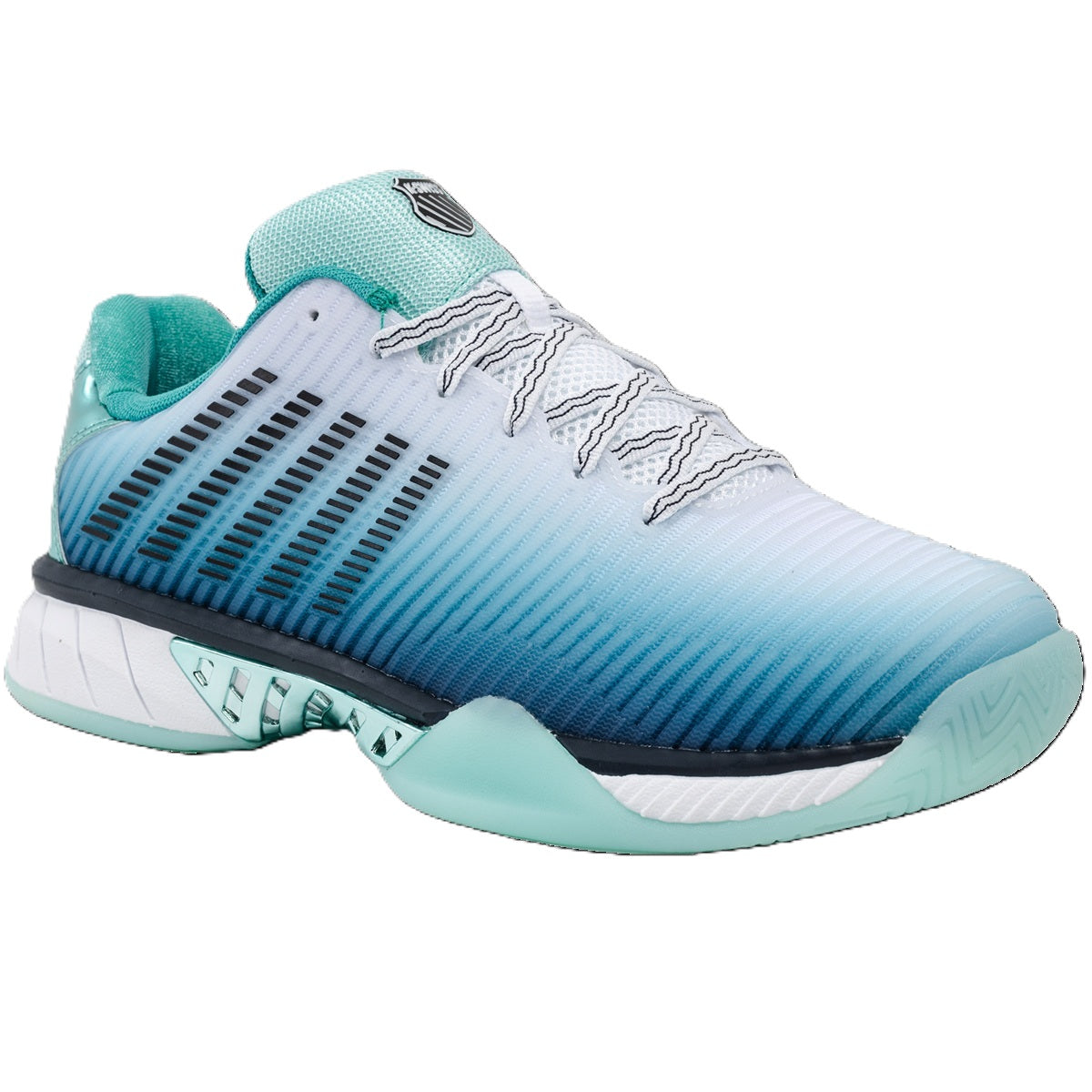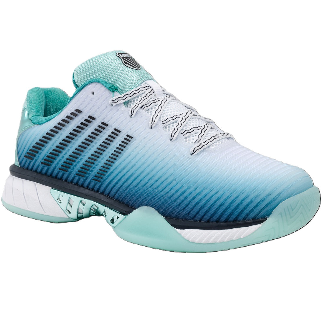 The K-Swiss Hypercourt Express 2 Lucky In Love Tennis Shoes (Capri/White/Midnight-Metallic) builds on the success of one of the most popular women’s tennis shoes in the sport, the Hypercourt Express. This updated version offers a lighter overall build, a more supportive upper, and advanced Surgelite midsole technology for superior comfort. The Hypercourt Express 2 maintains the signature roomy, comfortable fit players love while introducing a fresh, modern style to keep you looking and feeling your best on the court.