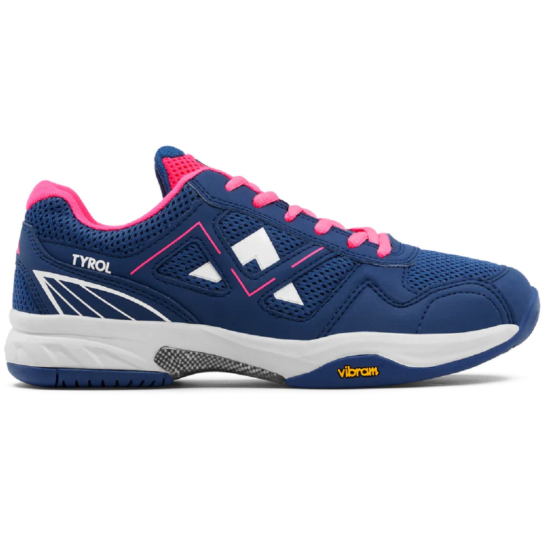 The Tyrol Women’s Volley-V Pickleball Shoes (Navy/Pink) is part of Tyrol’s Volley series for pickleball players who demand comfort and stability while playing on rough outdoor silica grit court surfaces. The Volley V series shoe is being offered with the durable Vibram outsole. The Volley V series shoe is produced for players who want comfort and support with performance features from their footwear product. The wide toe box ensures a comfortable playing experience on the court. The Volley V series is designed for outdoor playing surfaces.