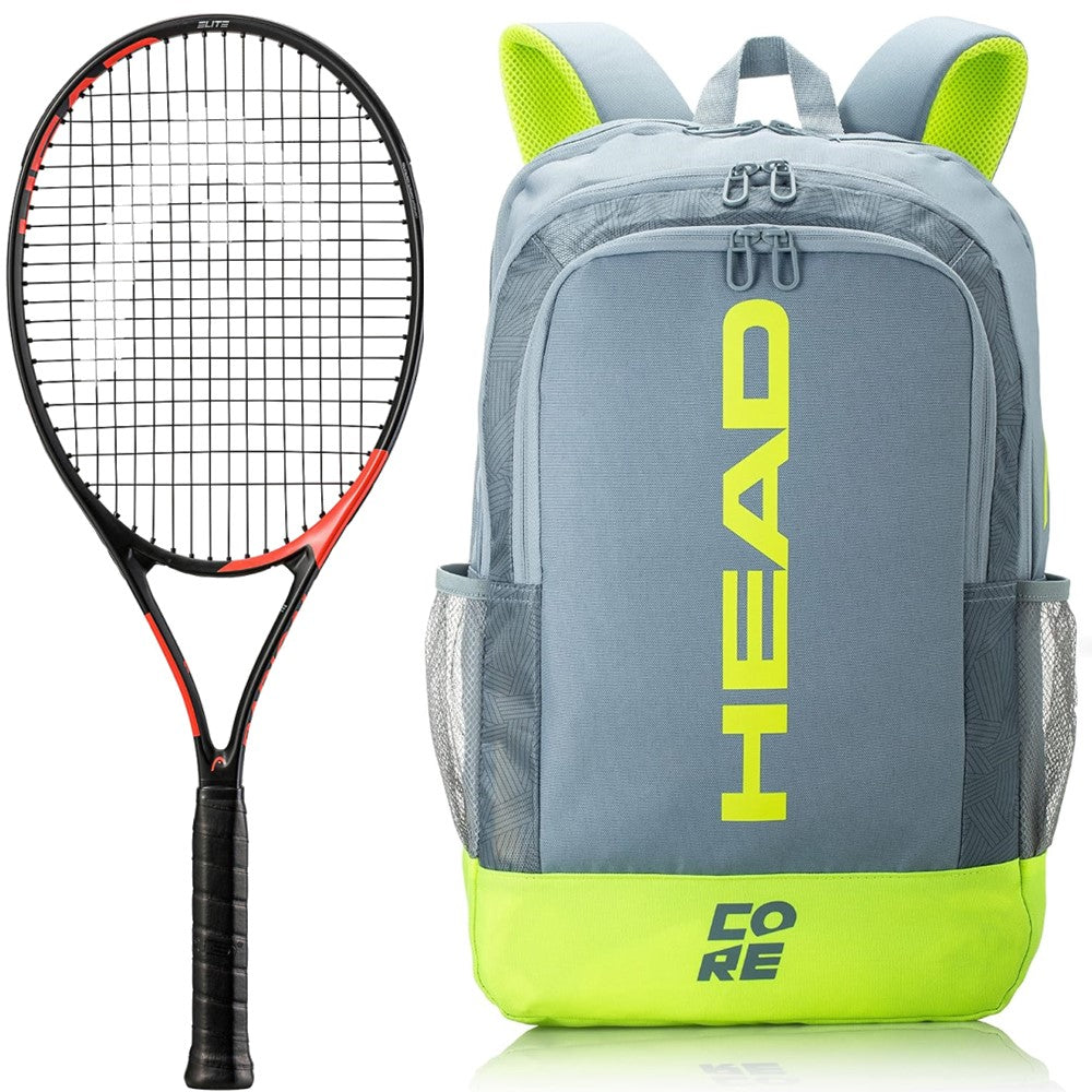 Head Ti. Radical Elite Tennis Racquet Bundled w a Core Tennis Backpack (Grey/Yellow)