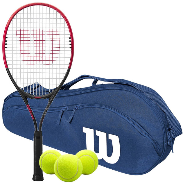 Wilson Bundles Featuring racquets such as the Essence, Six Two, Hyper Hammer, Energy XL, and Pro Staff Precision XL 110, these sets pair durable aluminum or composite frames with the classic Wilson Advantage 2.5 Bag or a backpack option. Accessories include standard or pink tennis balls, with some models emphasizing large sweet spots, vibration dampening, and extra forgiveness for newer players.