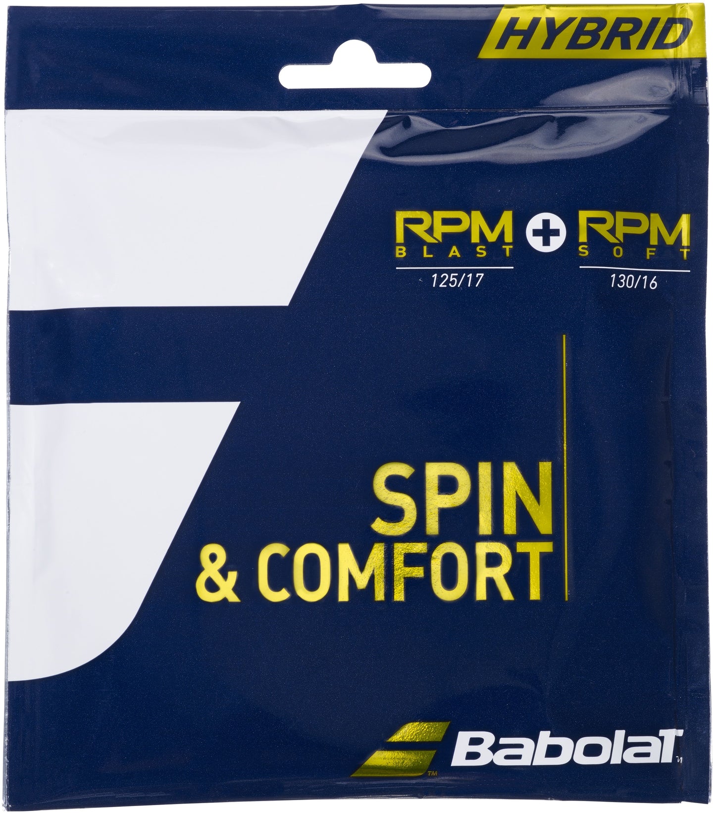 The Babolat Hybrid RPM Blast 125 17g + RPM Soft 130 16g Tennis String maximizes spin in a way that suits your playing style. It’s the perfect combination for developing players looking for spin with a touch of comfort. Your racquet’s strings are its driving force. In fact, they account for half its performance. In other words, you need to choose carefully.