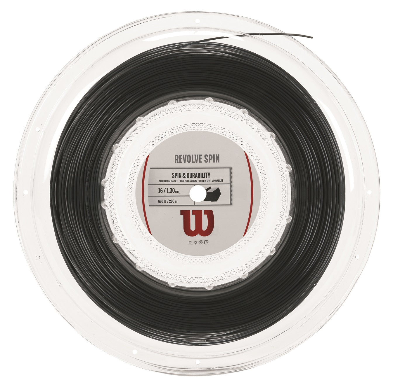 The Wilson Revolve Spin 16g Black Tennis String (Reel) is comprised of Crosslink Ester Polymer and UHMW. Now featuring an edged shape, Revolve Spin offers exceptional spin while maintaining comfort and power.