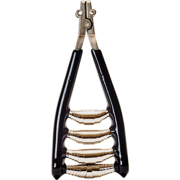 The most important feature of a stringing machine string clamp is that it holds the strings securely, yet gently enough as to not put undo stress on the strings. A good string clamp will have a flat gripping surface to provide even pressure without denting. If a clamp dents a string, it creates a weak spot that often results in premature breakage of that string.