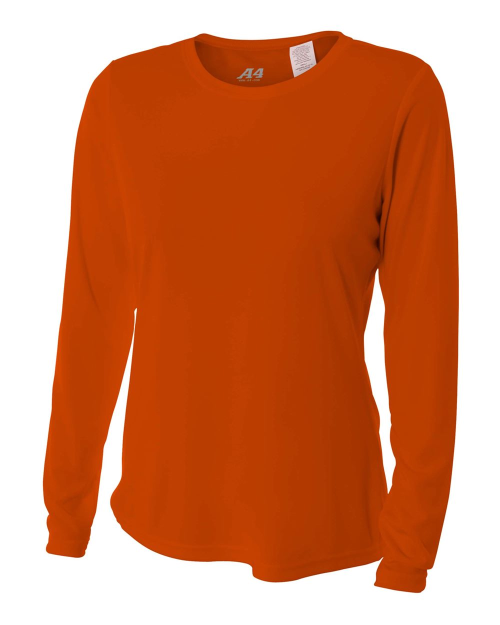 A4 Women's Performance Long-Sleeve Crew Neck Shirt (Orange)