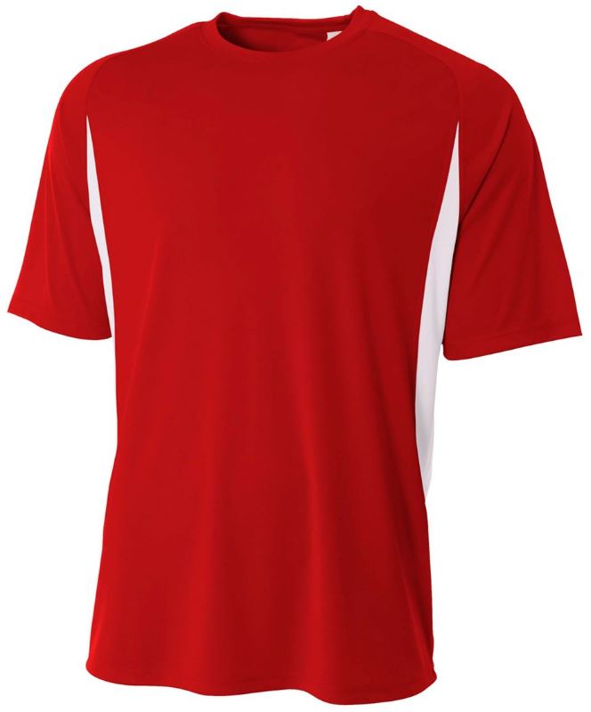 The A4 Men’s Performance Color Block Crew Shirt is a high-performance tee made from A4’s 5-Star Micro Poly Interlock fabric with side color blocking for an attractive and slimming look. In its short sleeve format it is perfect for soccer, races, casual softball and intense workouts.