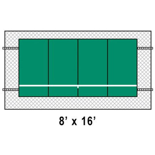 Tennis backboards are sold as four foot panels and install against fence lines. The number of interlocking panels needed is determined by necessity. Manufacturers recommend 16 feet of wall for singles practice and a minimum of 20 feet for doubles. As your skill level goes up, so does the number of recommended panels. Proper installation and regular maintenance is vital for warranty validation and a long product life.