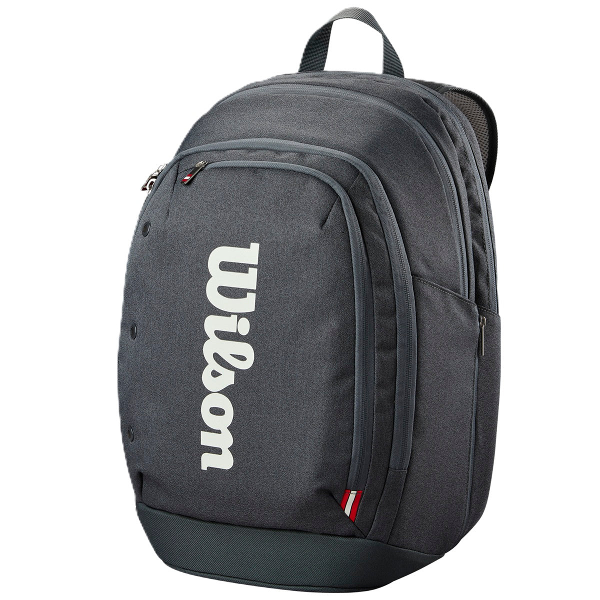 Eco Friendly Composition - Fabric Composition 85% RPET Polyester / 15% Polyester. RPET is recycled PET.The Wilson Tour Tennis Backpack (Charcoal) features an updated, modern design with a dynamic silhouette plus improved shoulder straps for better comfort.