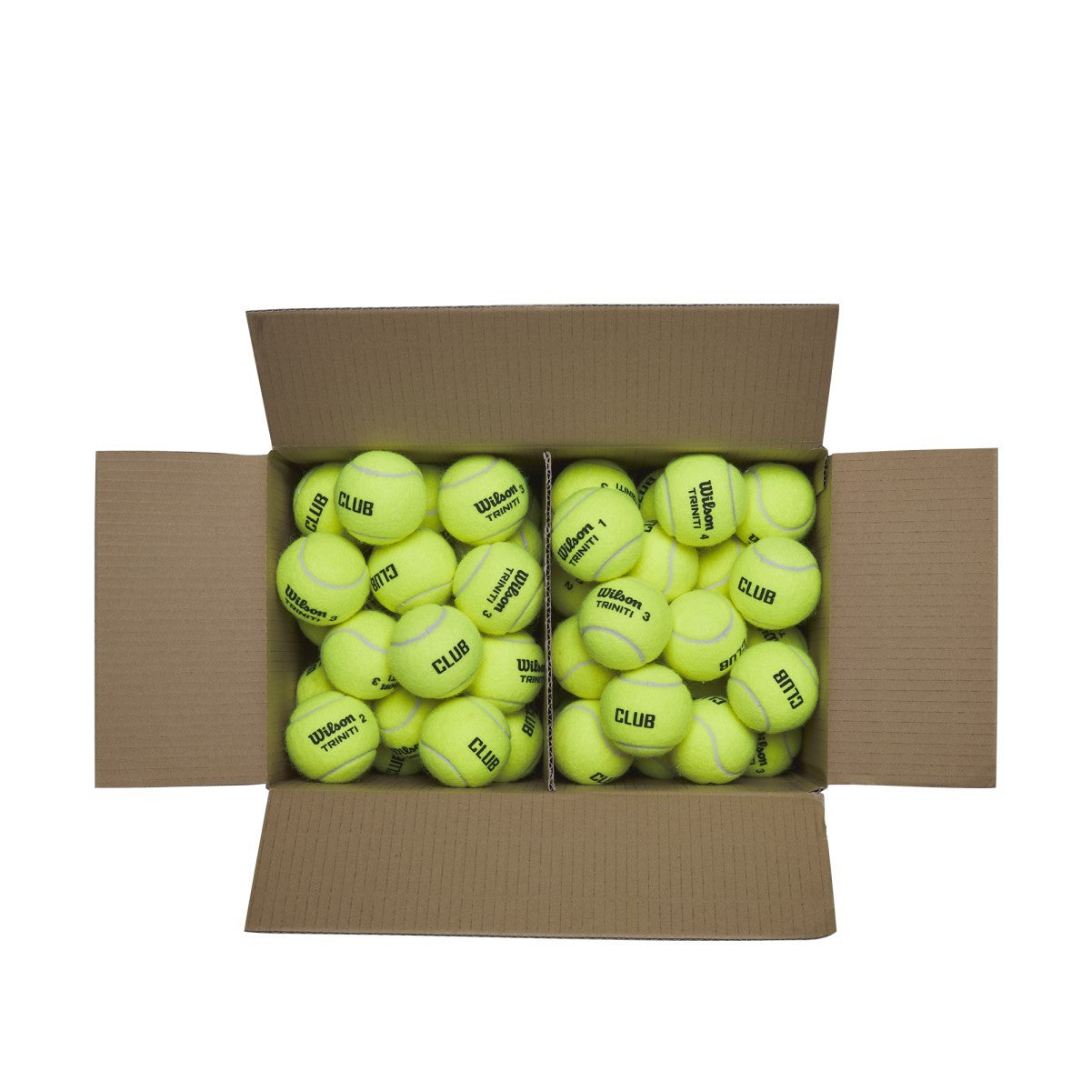 Wilson Triniti Club Tennis Ball Case - The evolution of the first performance tennis ball designed with fully recyclable packaging, Triniti Club gets even more eco-friendly in a 72-ball master carton, eliminating the need for individual sleeves. Designed for clubs and academies, this setup is ideal for players and coaches to place balls directly into their baskets. The ball core integrates a unique plastomer material that impressively extends fresh ball feel, while STR Felt provides enhanced durability and is 50% more flexible than the standard ball for better feel at contact. This blend of new core material and flexible felt allows this ball to maintain enough liveliness to exist outside of a pressurized can. Between a combination of innovative ball technology and unique sustainable packaging, Triniti ushers in a new era for performance tennis balls both on and off the court.