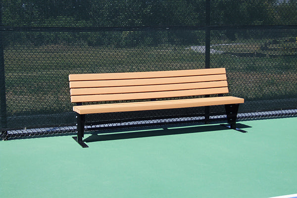 The SunTrends 6 ft Court Bench w/ Backrest (Black) mounts directly to the court surface for simple installation.
