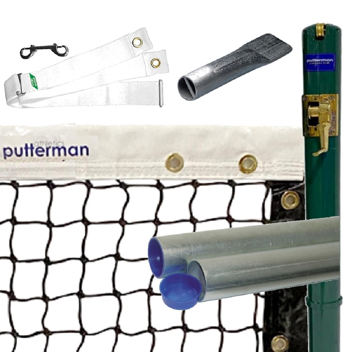 The Luxury PICKLEBALL Court Equipment Package is ideal for someone looking for all the necessary equipment parts to outfit a pickleball court: from the Post and Net to the sleeves that go in the ground to hold the posts, and a center strap with pipe anchor to hold the center strap down in the middle of the court.