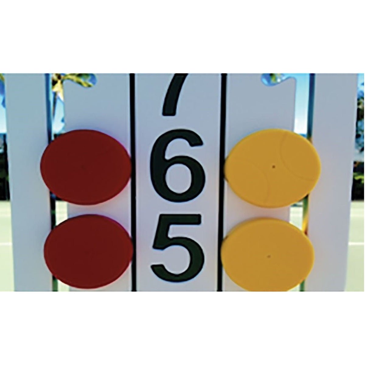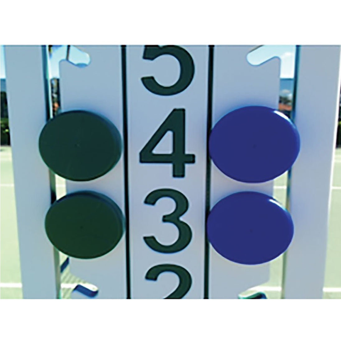 The Har-Tru LoveOne Tennis Scoreboards are the highest quality self-contained scorekeepers on the market today. Created with great design in mind, each number is large and the scoring pucks are color coded for each team so the score is easy to read. Self-contained and very intuitive to use—just slide the puck up and down to keep track of score. The Loveone Tennis Scoreboard is both UV resistant and weatherproof. These scoreboards are made using high density marine grade plastic, so they look great and last a long time.
