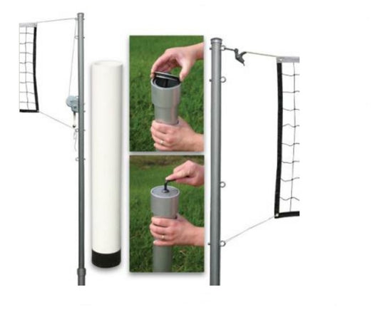 The Outdoor Volleyball Set (Steel Top and Sleeve), #VBPK2 includes a 10’ Galvanized 2 3/8’ O.D. steel pole inserted 2’ into ground. Drilled for volleyball, badminton and tennis. Includes steel top cable net with steel ground...Regular price $739.99Regular price $739.99