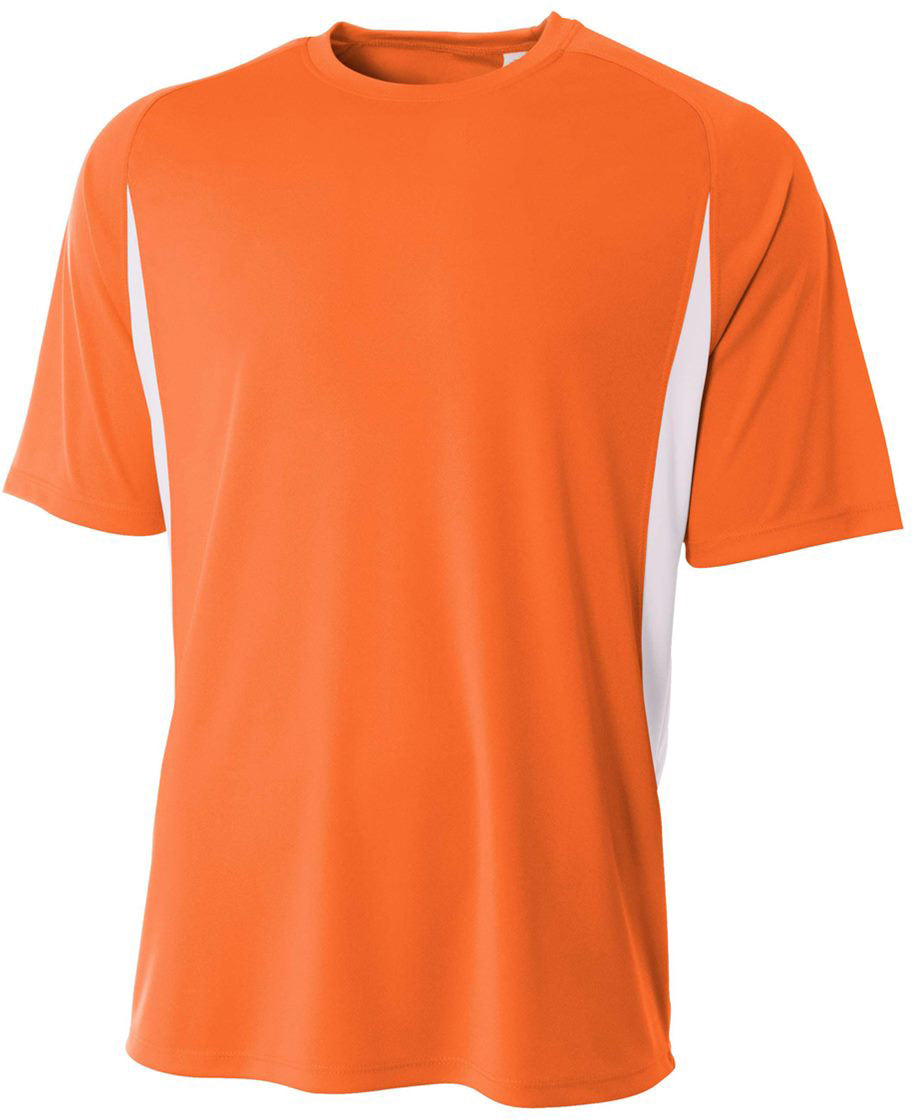 The A4 Men’s Performance Color Block Crew Shirt is a high-performance tee made from A4’s 5-Star Micro Poly Interlock fabric with side color blocking for an attractive and slimming look. In its short sleeve format it is perfect for soccer, races, casual softball and intense workouts.