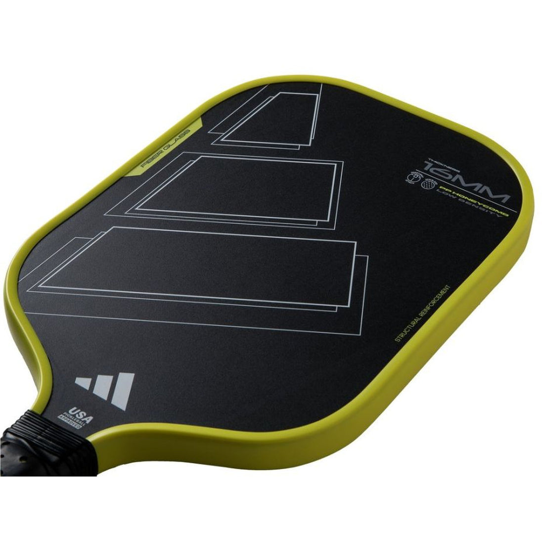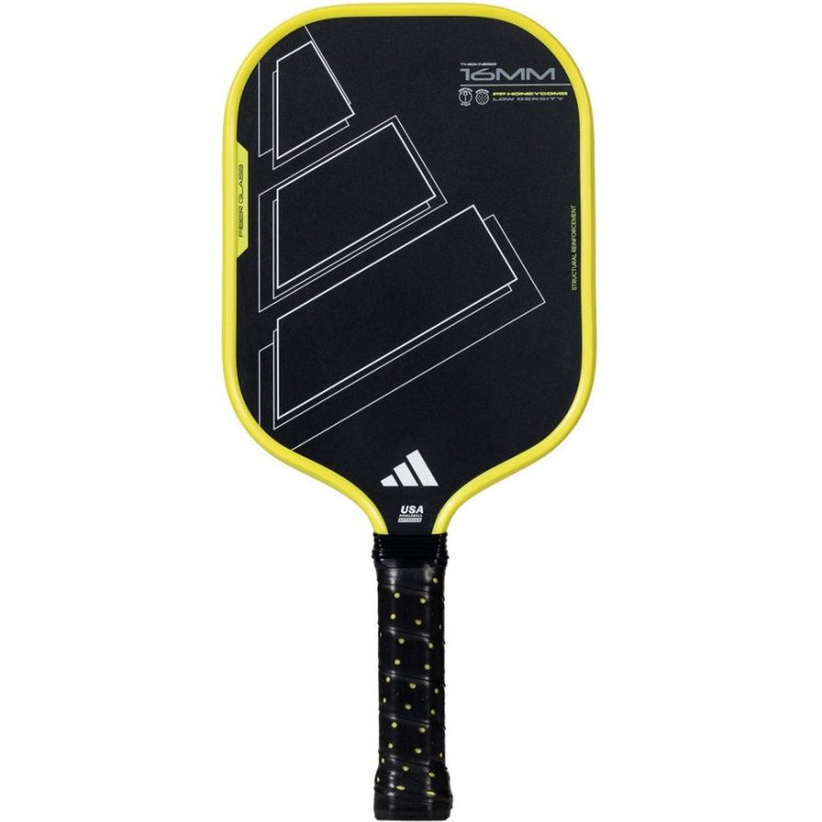 The Adidas RX Team ATTK Pickleball Paddle features a fiberflass surface for a comfortable and forgiving feel. The 16 mm core provides a distinct balance of control and forgiveness. The elongated paddle offers increased reach and power for those who prioritize aggressive play and powerful shots.