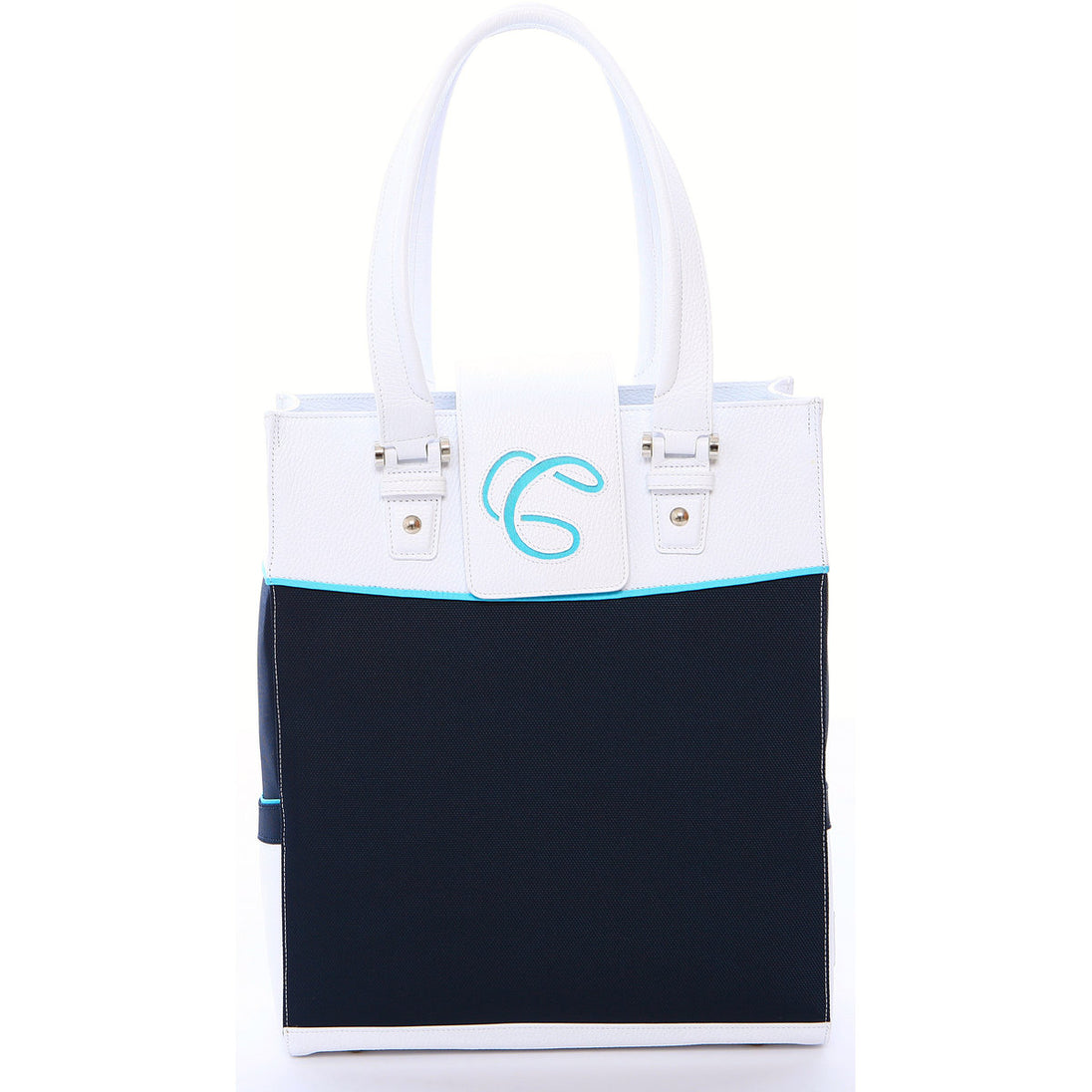 The Rendezvous is our newest rendition of a stylish tote! More than just a tennis bag… The “Rendezvous” bag keeps you stylish from the office to the court to your after play lunch. Made in Italy, with the finest materials, the sturdy construction holds 2 racquets easily. Detailed in turquoise, with the finest craftsmanship, this bag clearly makes you look great, feel great & play great! The two outside pockets allowing easy accessibility for your cell phone and keys.