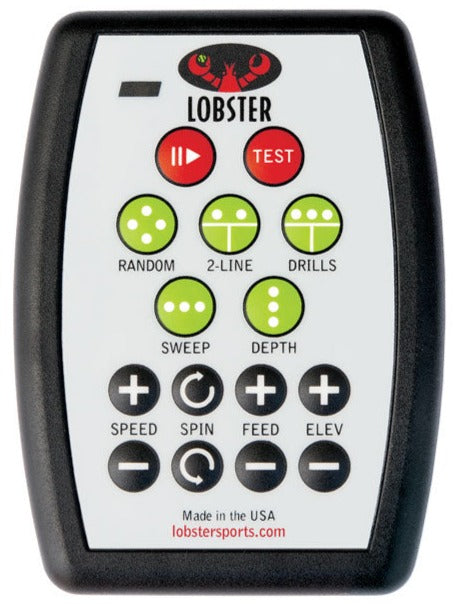 Gain greater control of your training regimen with the Lobster Grand 20-Function Wireless Remote Control. The state-of-the-art compact controller allows you to make instantaneous changes to functions like: play/pause, oscillation sweep, fully random, 2-line, speed, feed, spin, and much more. This remote is NOT standard equipment on grand series machine, but rather, an optional accessory.