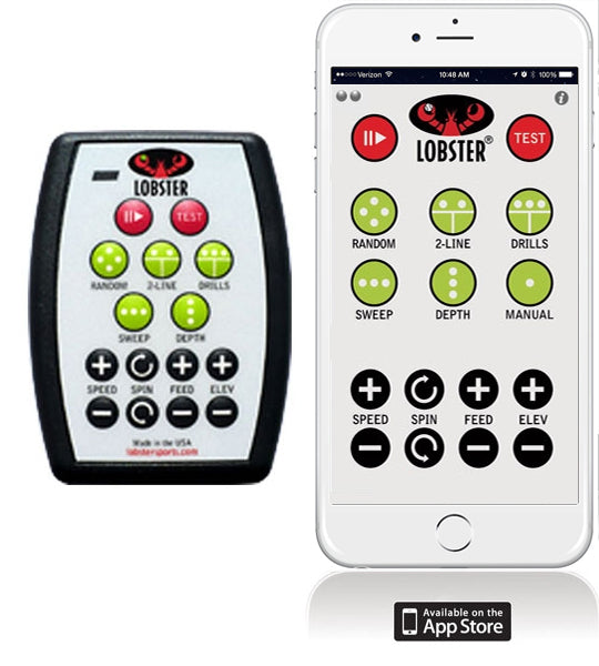 The Lobster iPhone Remote Control Assembly and Elite Grand Remote is a proprietary system that allows the customer to use their iPhone or iPod Touch device as the remote control to operate their Elite Grand Series machine. The system consists of a Wi-Fi Remote Receiver that is factory installed into the machine, along with the need for the customer to download the free “Lobster Remote Control” app from iTunes. Once connected, through your iPhone Wi-Fi connection network, your iPhone or iTouch device will allow you to gain complete control over the operation of your tennis ball machine. The new iPhone Remote Control can be used exclusively or can be used in addition to the more traditional 20-function Grand Series Remote Control included with this product, giving customers the best of both worlds.