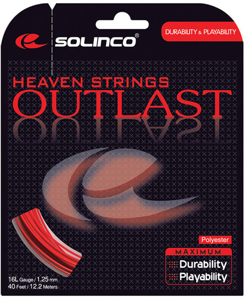 The Solinco Outlast Tennis String is a newly developed, high-performance and well-rounded co-polyester string designed to provide maximum durability and all-court playability. Utilizes an innovative high-powered co-polyester monofilament fiber designed to provide exceptional durability and unparalleled playability.