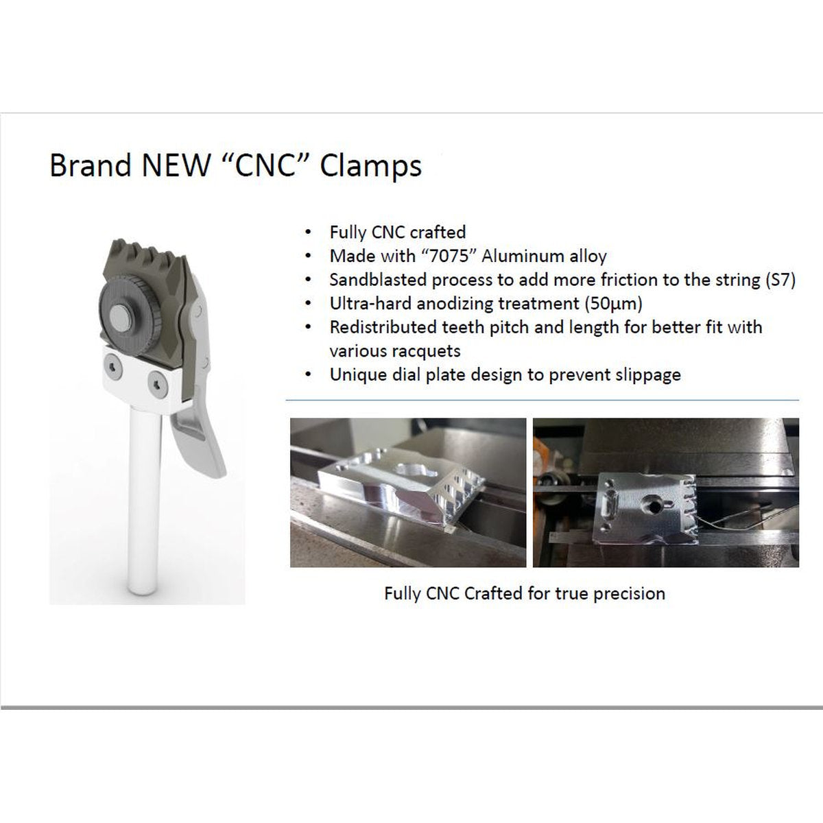 The Tourna 350-CS is a true workhorse for a great price. With the same mounting features and components as the 650-ES you will feel like you’re using a high-end machine. The ease of use and solid feel is unrivaled at this price point for a crank machine. The 350-ES tennis stringing machine is an upgrade that now includes the new CNC swivel clamps which are the same that are found on the 700-ES and 850-ES.